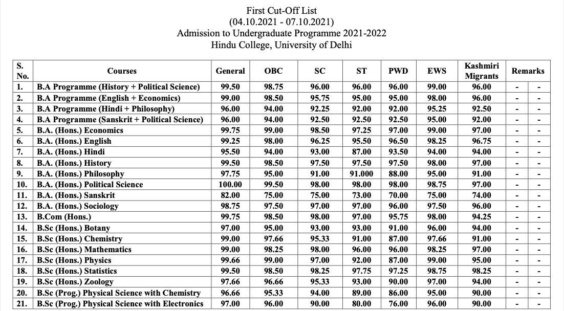 The University of Delhi has released the second cut-off DU Cut off 2021 Second list for admission in Undergraduate UG courses today October 9 2021. The first step in changing the college is to withdraw the admission that the. The admission process will begin on October 11 2021.