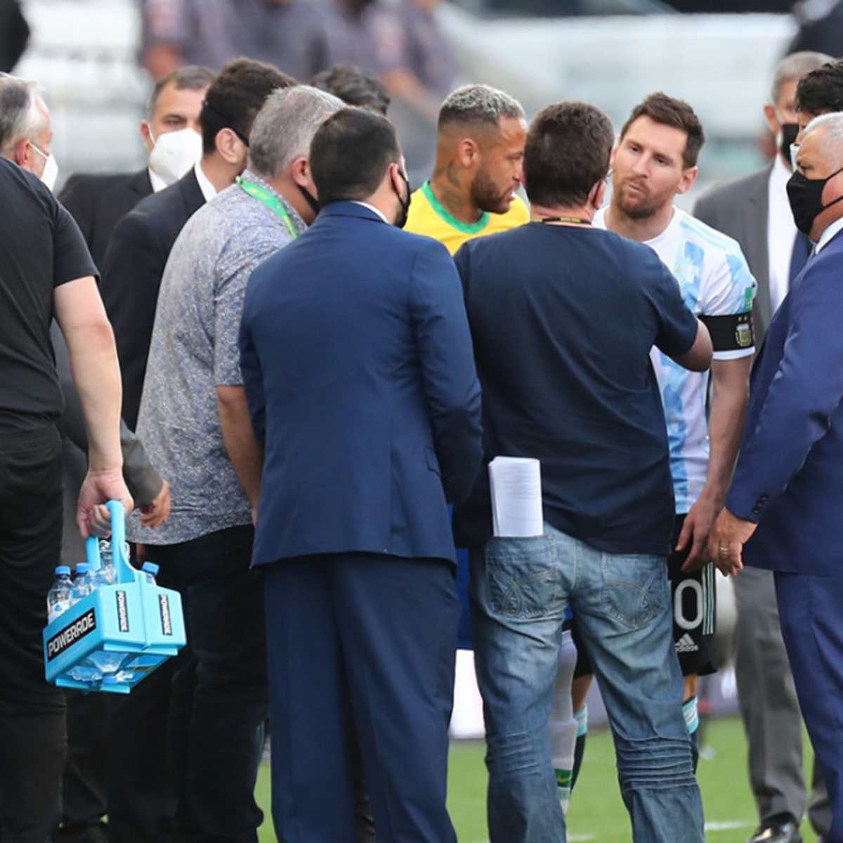 Players and officials are on the pitch as play is interrupted after. Brazil vs Argentina. The highly anticipated match between Brazil and Argentina was interrupted by Brazilian health officials due to four Argentine players who didnt comply with Brazils quarantine regulations.
